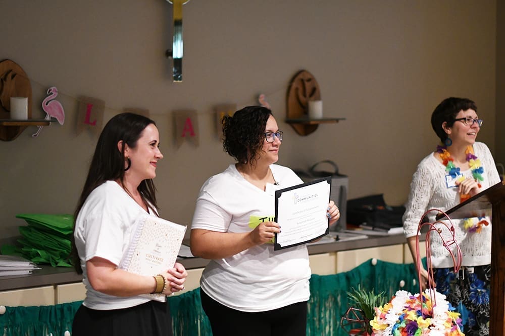 On June 25th, over sixty people gathered to celebrate the completion of Caring and Sharing of South Walton’s first “Awaken” class, where six courageous women spent fourteen weeks developing their leadership skills, building community, dreaming about their future and setting SMART goals. In addition twenty-four volunteers were recognized for completing a complementary volunteer training program. At the celebration, three of the Awaken graduates shared testimonies of their journey with the Communities of Transformation (COT) program and expressed their excitement to be moving into “matched groups” with sixteen trained volunteers for ongoing support as they work on their goals. The Awaken graduates are trauma and abuse survivors, grieving significant losses, in recovery, finalizing divorces, and struggling to make ends meet. They are also passing exams, serving in our schools, staying sober, publishing articles in the local paper, caring for family members, volunteering in the community, re-entering the workforce, making new friends, learning to trust themselves and others, getting counseling, visiting local churches, and asking for prayer.